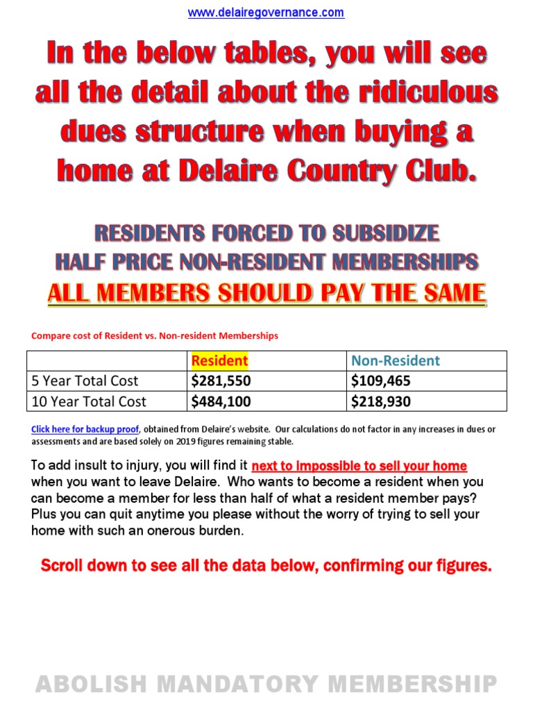 The amount of the club dues is 30000 per member plus a 20000 assessment charged annually. Pool membership only see below. Delaire Country Club Contact Information.